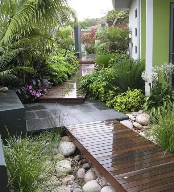 如果你擁有一棟別墅,那么,很幸運,你同時也擁有了無數(shù)人夢寐以求的花園。園子的悠閑愜意讓緊繃的神經(jīng)得以放松,讓忙碌的生活得以舒緩。一方院子,有著花草相伴,看云卷云舒,花開花落。![]() 無論是獨棟別墅的花園還是郊區(qū)小院、屋頂?shù)穆杜_,私密性是私家花園的重點。如果院子空間有限,而又和鄰居靠在一起,可以利用護欄、高大的樹木、灌木,或制作灌木籬笆,建設木圍欄或者直接砌一堵墻等方式來遮擋。 ![]() 如果想在保持私密性的同時又能與外界交流,可以采用相對開放的護欄,例如階梯形狀、空隙較大的護欄、鐵藝的護欄等。種植一些低矮灌木,如密植玫瑰、繡線菊、女貞等與攀爬植物(如五葉地錦、爬藤薔薇以及藤本月季)與護欄組合,達到上密下疏的效果。 ![]() ![]() ![]() 二、水景因地制宜 水景是打造花園的點睛之筆,院子水景的建造一定要因地制宜。如果有條件的話,不妨挖一個水池,蓄一池清水,點綴少許石景,配上一些植物,花草與水景相映成趣,更具美感。 ![]() ![]() ![]() 水景墻是花園里最讓人放松的景觀裝置,噴泉水墻是比較傳統(tǒng)的設計方式,但能帶給花園一種極簡和清新的面貌。動態(tài)的噴水效果能打破整面墻的厚重感,將一靜一動的景觀元素結(jié)合在一起,使整個花園更具活力。 ![]() ![]() ![]() 三、天然材料鋪貼 花園道路鋪裝,選材應以天然的石材、原木為主, 例如黃金麻,芝麻灰和芝麻白, 五蓮紅,青石板、砂礫、鵝卵石等原始樸實的材料, 用天然材料表現(xiàn)出粗線條的質(zhì)樸,更凸顯花園的味道。 ![]() ![]() ![]() ![]() 在強調(diào)質(zhì)感和異域感覺的庭院中,使用粗獷的紅磚或者棕色系石板效果很好, 既與暖色系的矮墻相匹配,也和種植區(qū)的草地或砂礫地面形成呼應。 ![]() 四、利用構(gòu)筑物 構(gòu)筑物為花園提供了更多觀賞的角度,像矮墻、平臺、廊架、涼亭等構(gòu)筑物,因為不會遮擋視線,既能劃分空間,限定入口,又不會令花園顯得局促狹小,整體格局更加協(xié)調(diào)。 ![]() ![]() ![]() ![]() 一個原木搭建的亭式構(gòu)筑物、平臺可以用來觀景或休息之用,不同高度、形式的圍墻則可以作為座椅的擋墻,建造時建議選用與住宅相近的材質(zhì),保持一致性。 ![]() ![]() ![]() ![]() ![]() |